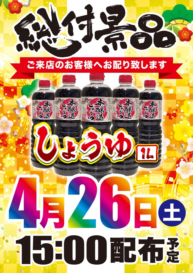 本日④/㉖(土)🌞抽選入場朝9時開店🎵総付け配布いたします❗
