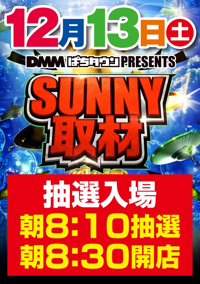 本日👉⑫月⑬日(土)👈👽SUNNY取材開催します👽