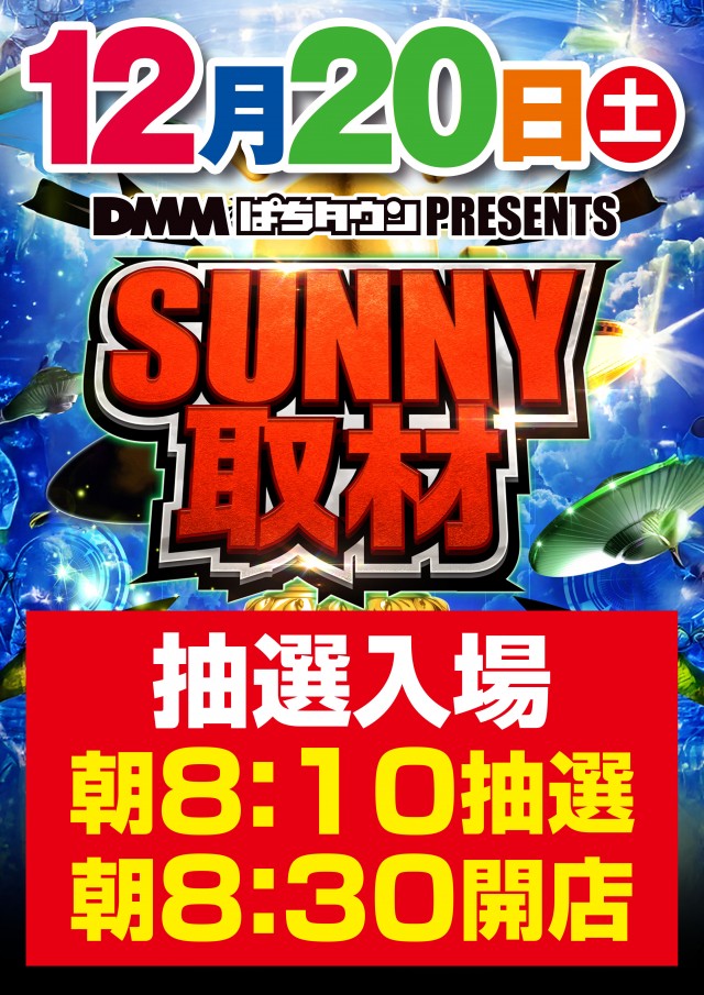 本日👉⑫月⑳日(土)👈👽SUNNY取材開催します👽
