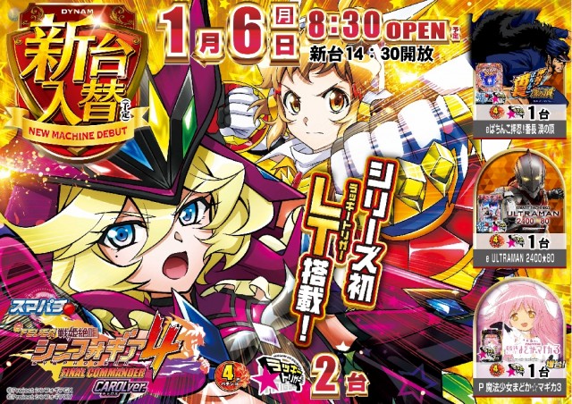 明日1月6日(月) 新台入替 8:30開店(予定)