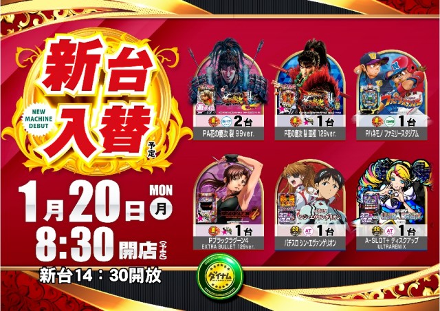 明日1月20日(月) 新台入替 8:30開店(予定)