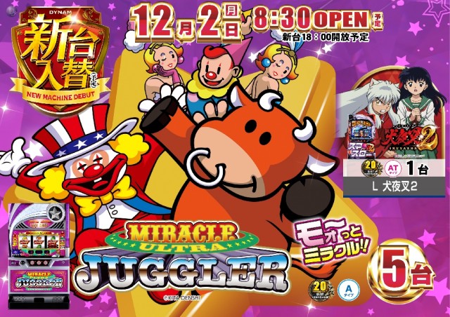 明日12月2日(月) 新台入替 8:30開店(予定)