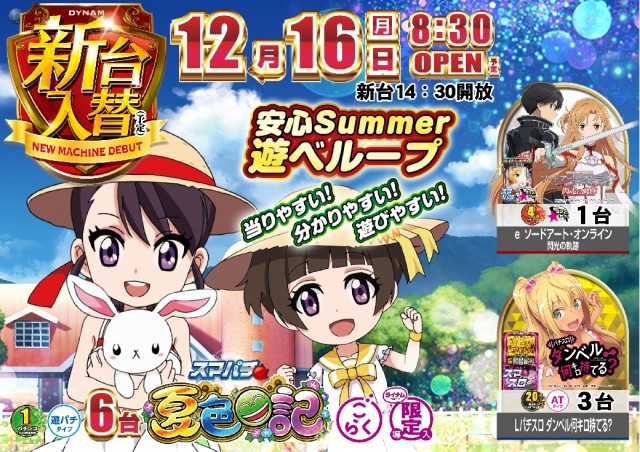 明日12月16日(月) 新台入替 8:30開店(予定)