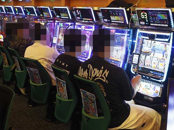 「マイジャグラーⅤ」や「アイムジャグラーEX」といったジャグラーシリーズも大盛り上がり。機種の醍醐味を味わうプレイヤーを複数目にしている。