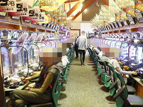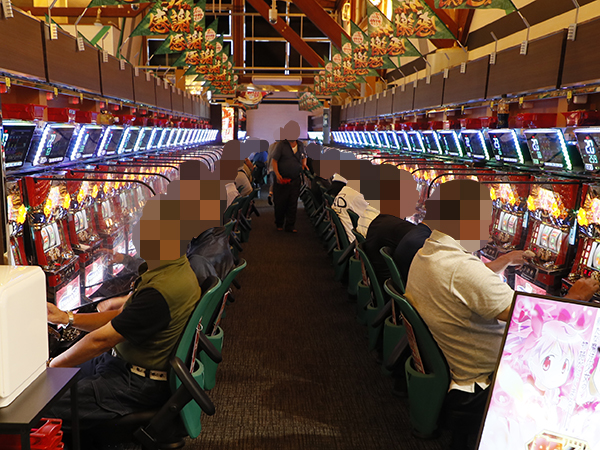 店内には老若男女を問わずプレイヤーが集合。パチンコ・パチスロの各シマから活気が感じられた。