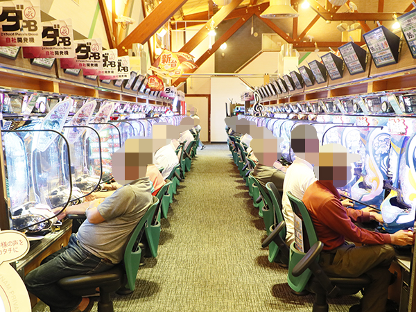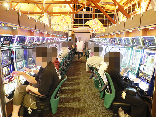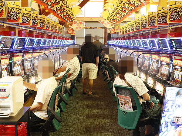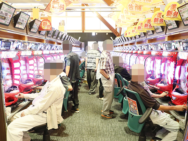 取材時は既に多くのプレイヤーが集結し、パチンコ・パチスロを問わずにぎやかな状況となっていた。