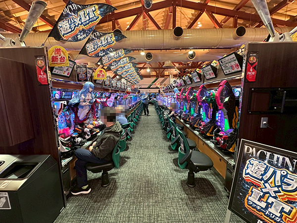 100円/89玉パチンコの盛り上がりも大きい。シマ全体に華やかな光景が広がっていた。