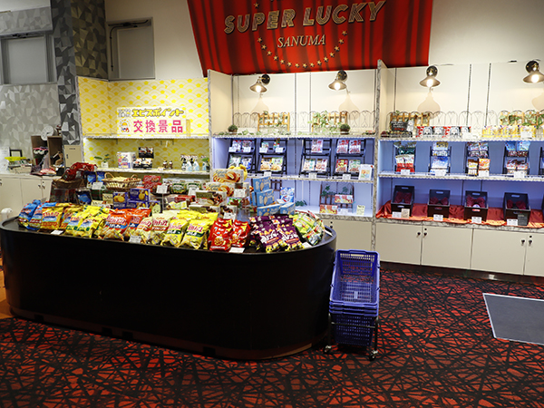 景品コーナーにはたくさんのお菓子やインスタント食品が用意されており、プレイヤーから好評だった。
