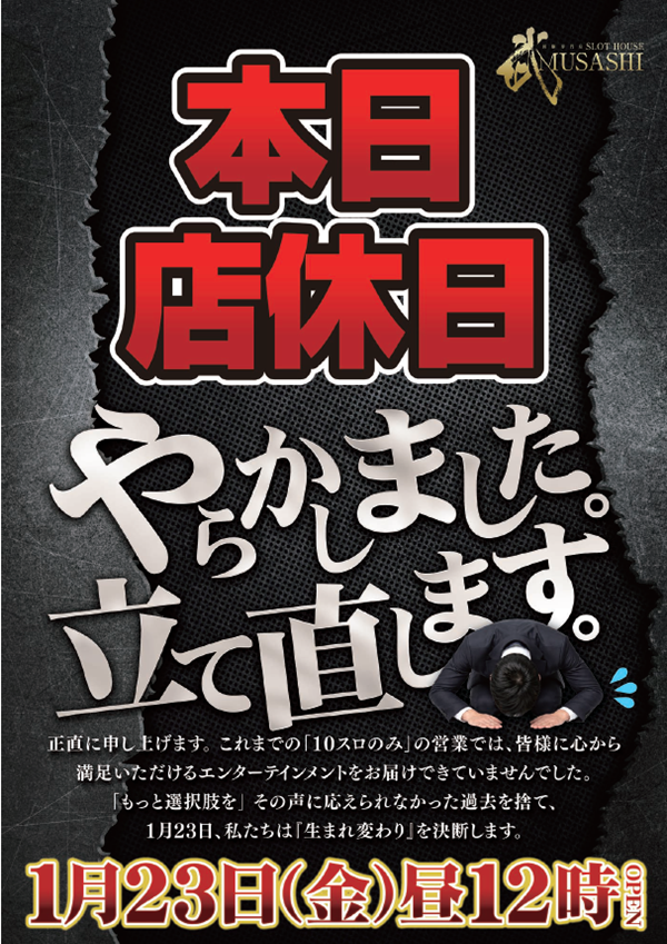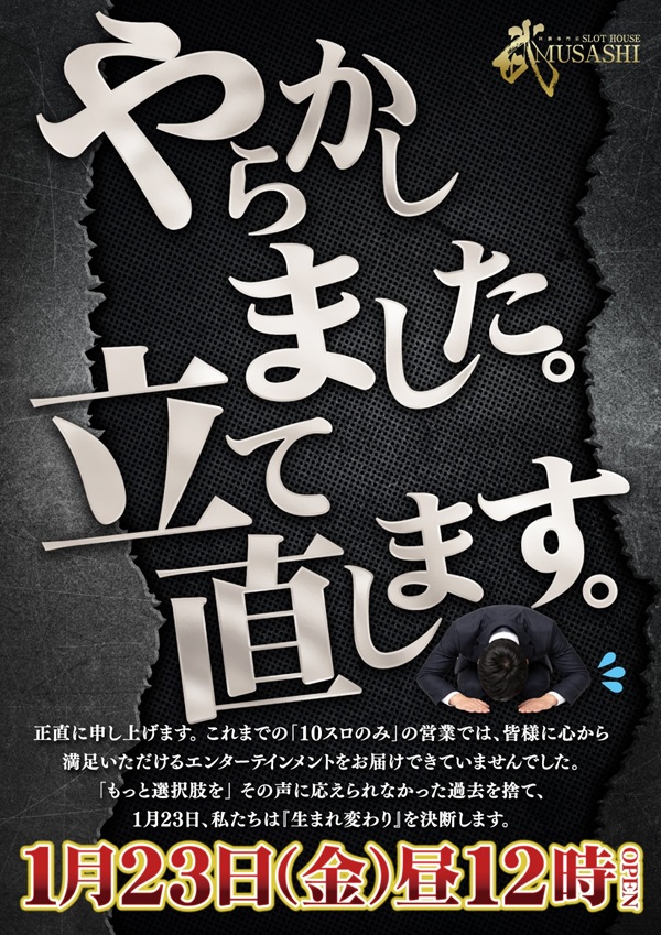 スロットハウスムサシ矢本店のお知らせ一覧