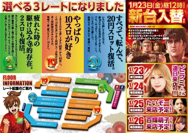 本日☆新台入替×ピラミさん来店予定☆昼12時開店☆