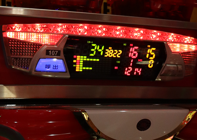 15時を過ぎた頃にデータカウンターをチェックすると、ボーナス当選回数が38回の台を発見。
