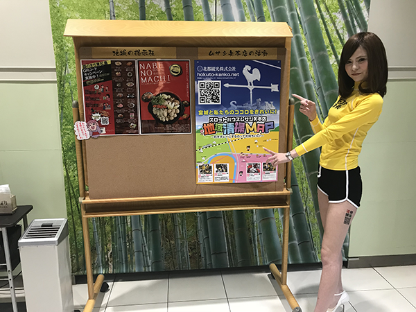 オススメ店舗の紹介や町の清掃活動に参加していることなど、地域に根付いたホールづくりをおこなっている「スロットハウスムサシ矢本店」。