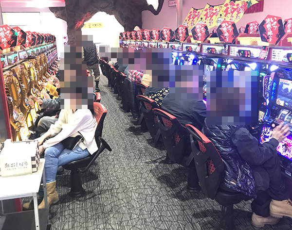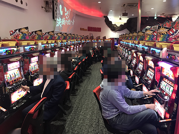 たくさんのパチスロファンが遊技を楽しんでおり、大にぎわいといった状況!