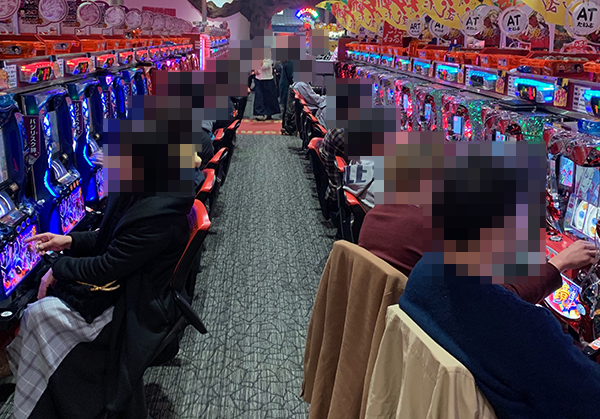 プレイヤーたちが楽しそうに遊技をおこなっていた「スロットハウスムサシ矢本店」。ステキなグラフに出会えたるいちゃんがうらやましいですね。