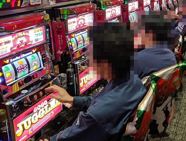 とくにイキイキと遊技をおこなう姿があったのは、新台として導入された「ゴーゴージャグラー2」。