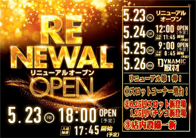 本日5月23日(金)リニューアルオープン18時開店予定!
