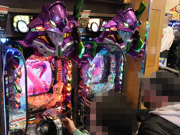 15時ごろの4円パチンコでは「e 新世紀エヴァンゲリオン 〜はじまりの記憶〜」や「P大海物語5」が人気で、プレイヤーの嬉しそうな表情を多数確認している。