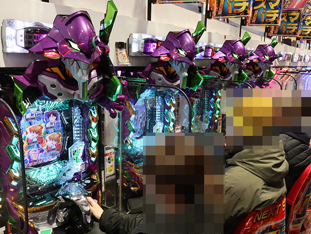 パチンコをみると、「e 新世紀エヴァンゲリオン 〜はじまりの記憶〜」が満席となっており、活気が感じられた。