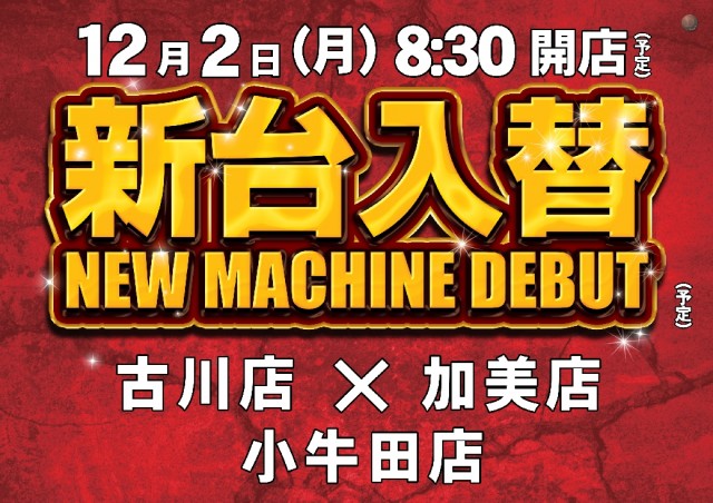 明日12月2日(月) 新台入替 8時30分開店(予定)