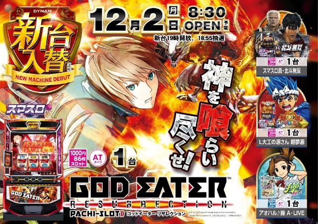 本日12月2日(月) 新台入替 8時30分開店(予定)