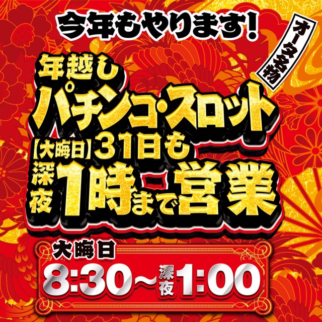 12/31(火)大晦日 今年も夜1:00まで営業します!!