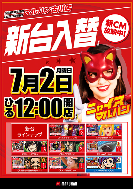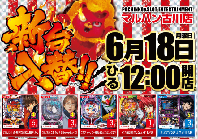 本日、新 台 入 替!!(予定) 12時オープン!!(予定)