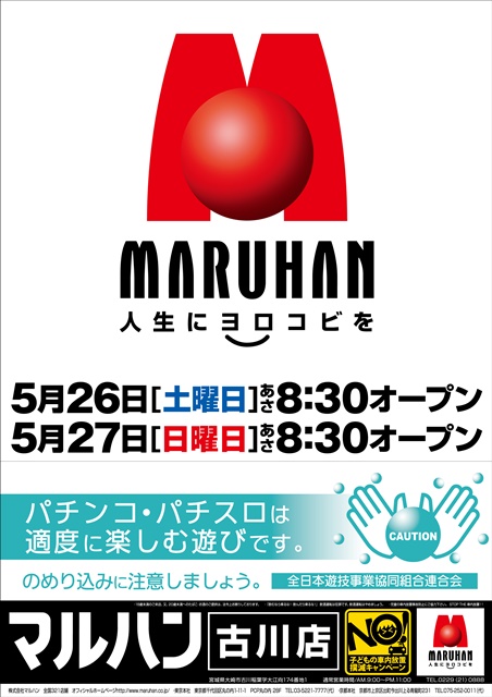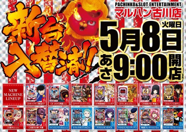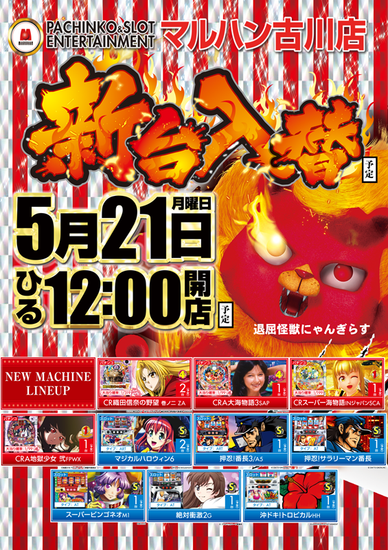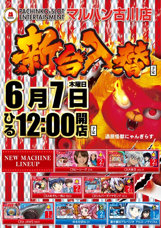 開店15分前に順番券の配布予定 ※新台入替初日のみ開店1時間前 |