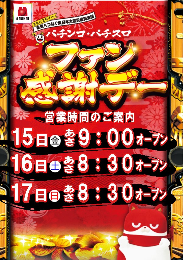 明日17日【ファン感謝デー】 朝8:30オープン!!