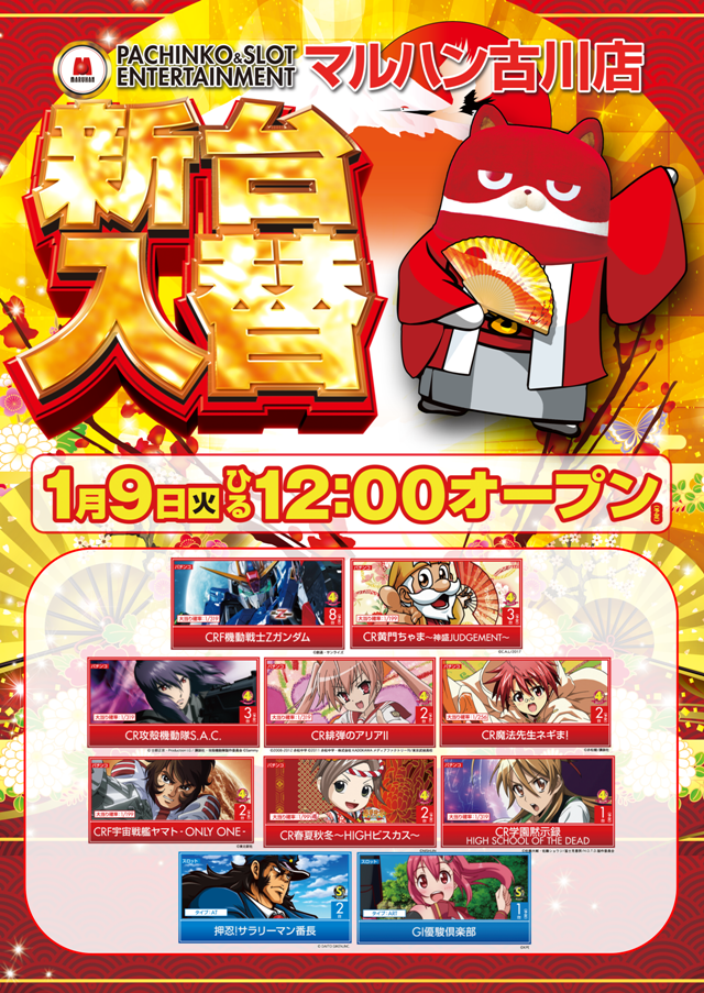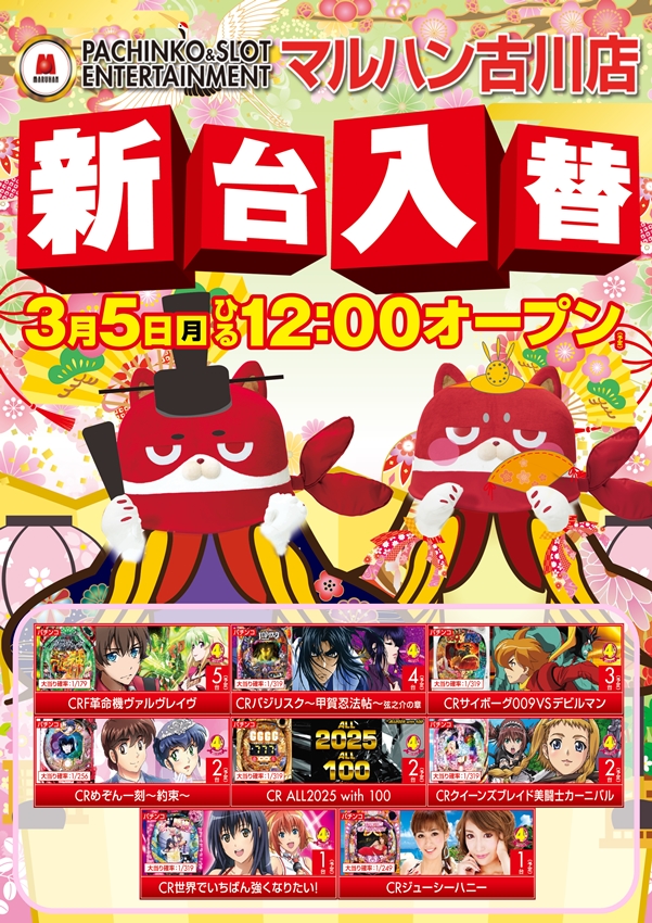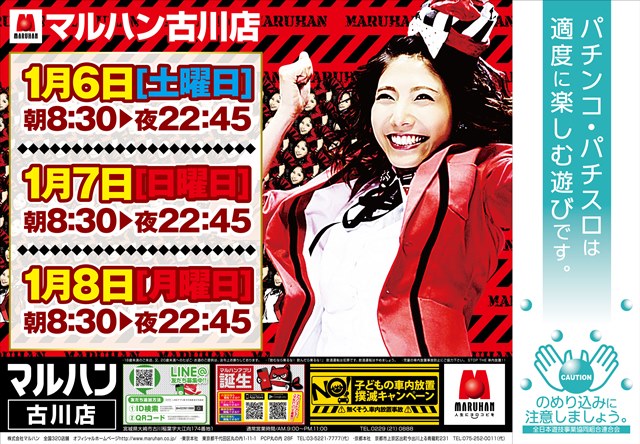 開店15分前に順番券の配布予定 ※新台入替初日のみ開店1時間前 |