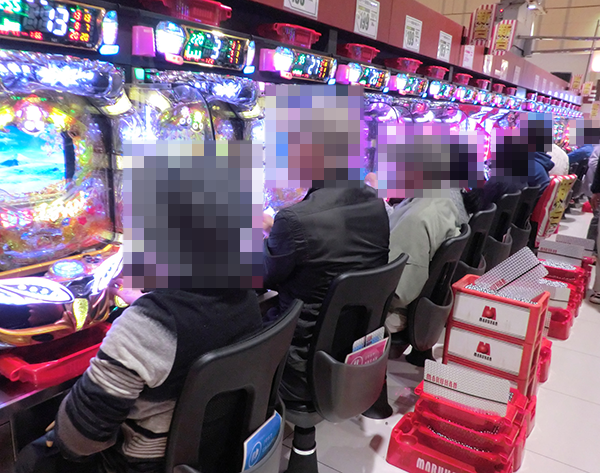 明るい雰囲気のなか、たくさんのプレイヤーが笑みを浮かべつつ遊技を楽しんでいた。