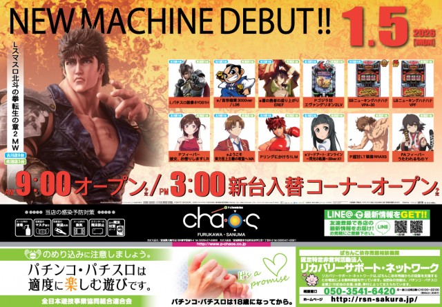 1月5日新台入替9時開店(予定)新台15時開放(予定)😉