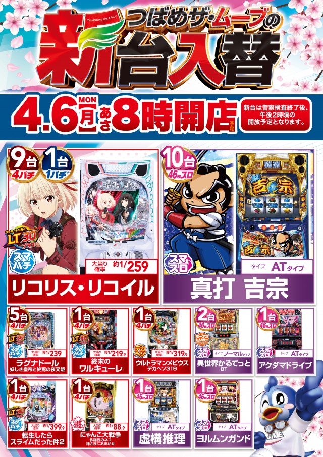 「つばめの新台入替」明日4/6(月)朝8時開店!