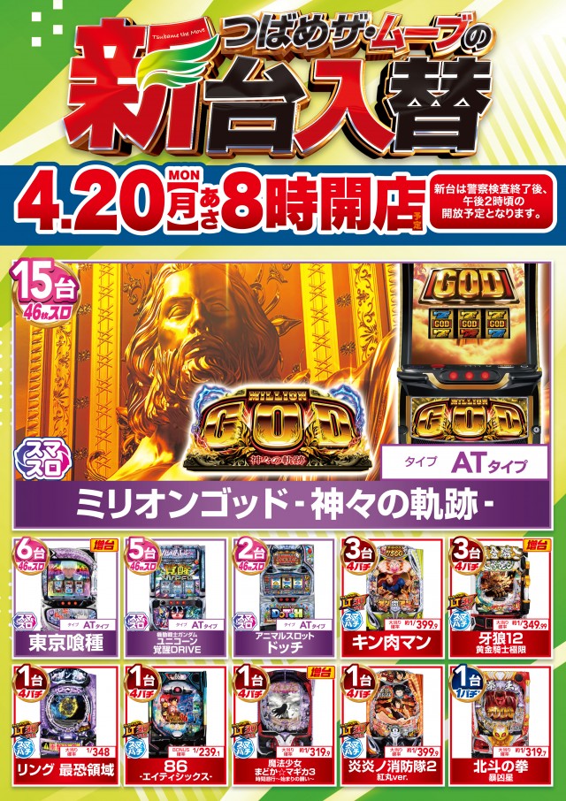 「つばめの新台入替」明日4/20(月)朝8時開店!