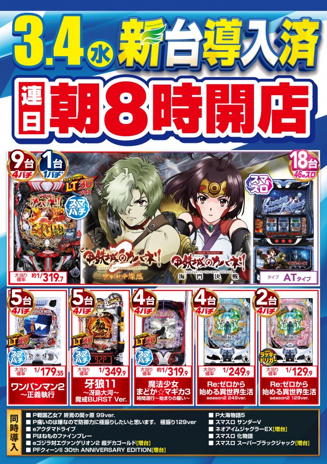 決意の「燕」!明日8日(日)朝8時開店&新台導入済🌈