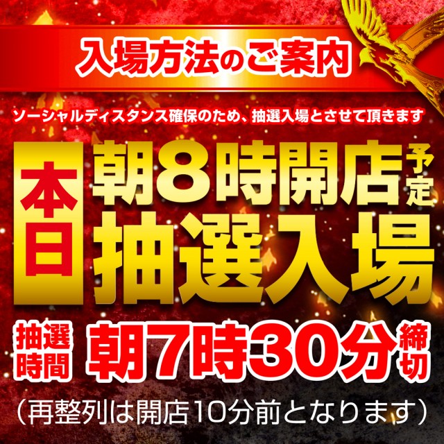 ソーシャルディスタンス確保のため、混雑が予想される場合は抽選入場を実施する場合がございます。 |