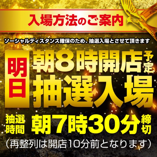 ソーシャルディスタンス確保のため、混雑が予想される場合は抽選入場を実施する場合がございます。 |