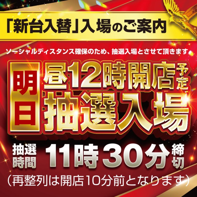 ソーシャルディスタンス確保のため、混雑が予想される場合は抽選入場を実施する場合がございます。 |