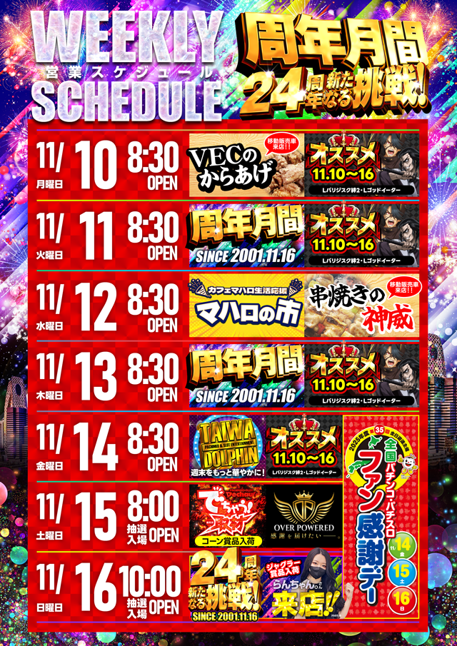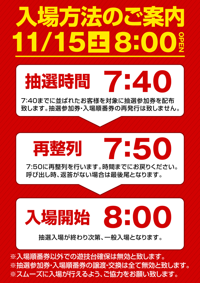11/4(火)★新台入替(予定)★あさ8時30分オープン