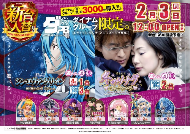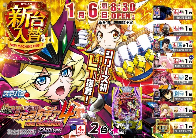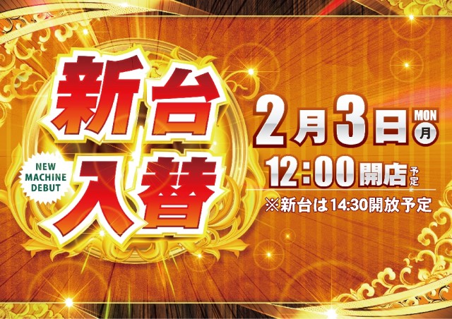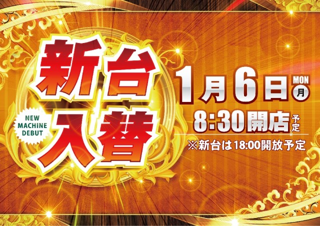 明日1月6日(月) 新台入替 8時30分開店(予定)