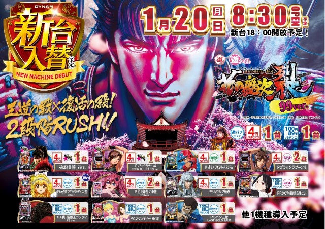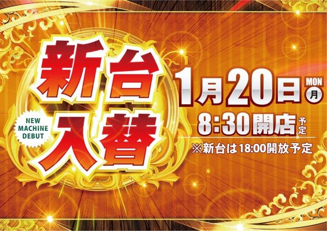 明日1月20日(月) 新台入替 8時30分開店(予定)