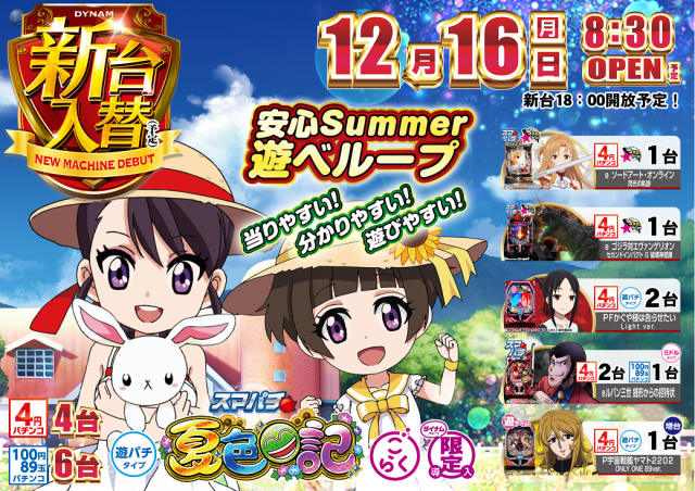 本日12月16日(月) 新台入替 8時30分開店(予定)