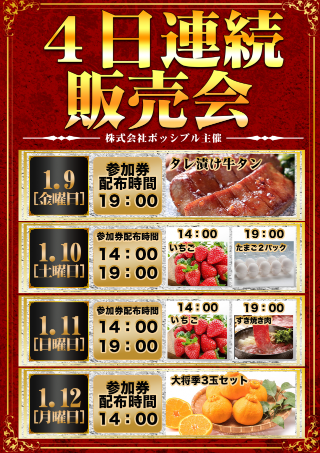 ★謹賀新年★1月4日(日)朝10時開店!販売会開催!!