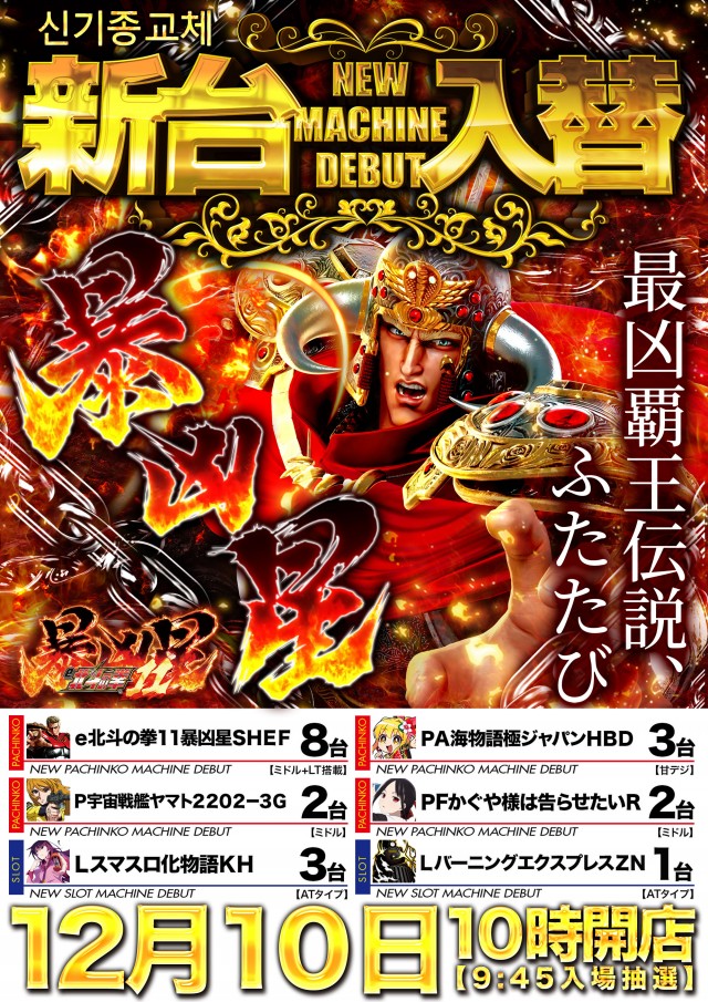 12月10日(水)新台入替!12月は周年月間★朝10時開店!