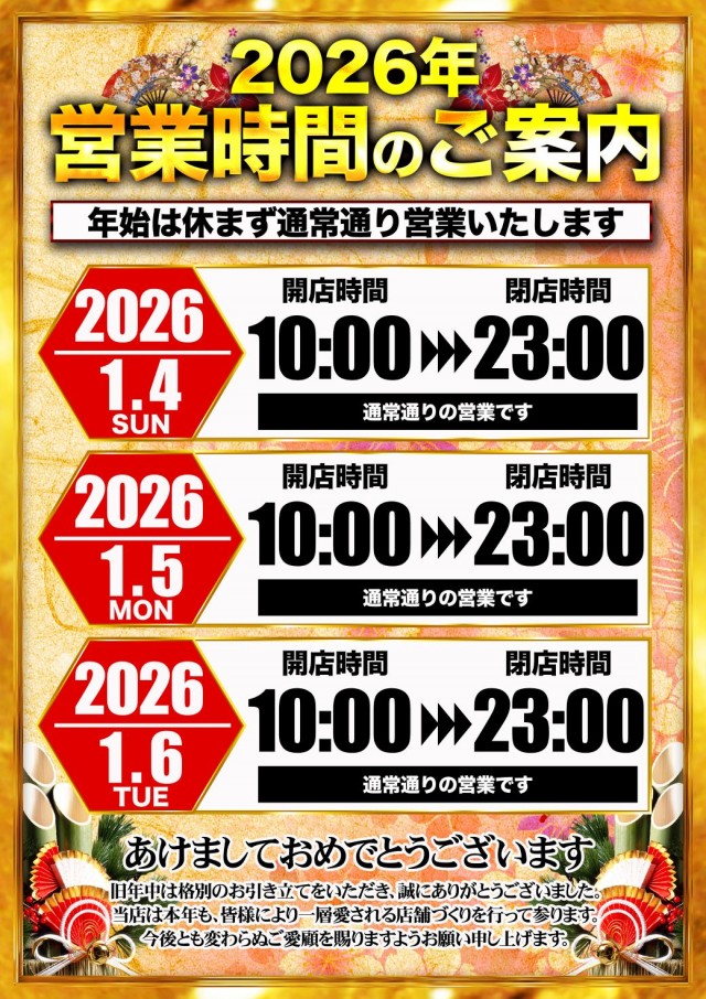 ★謹賀新年★1月5日(月)新春GOマルハン★朝10時開店!