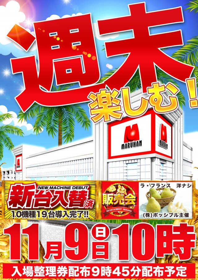 11月10日(月)週始めはマルハンへ!本日朝10時開店!