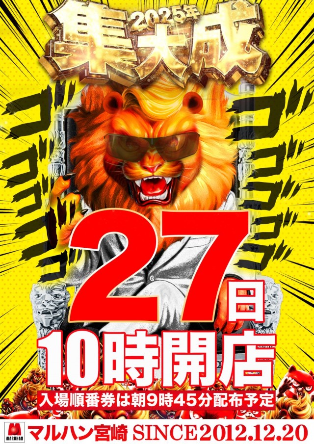 1月11日(日)宮崎県マルハン4店舗合同!朝10時開店!