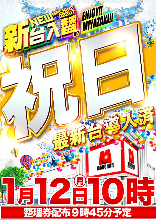 1月12日(月)最新台導入済!祝日もマルハンへ!