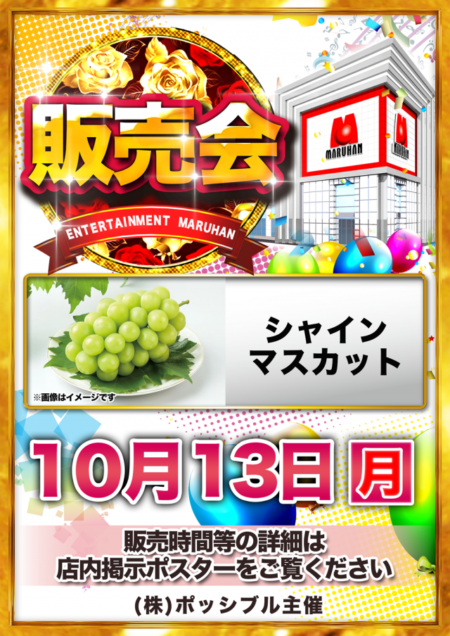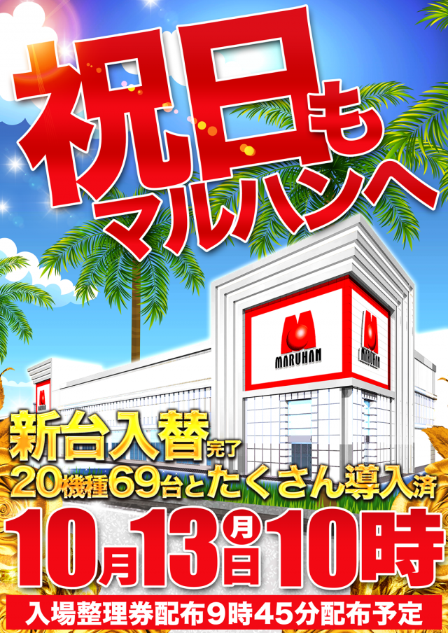 10月13日(月)祝日もマルハンで楽しもう♪販売会開催!