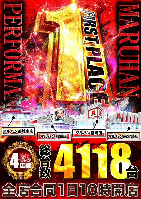 10月1日(水)宮崎県マルハン4店舗全店!朝10時開店!