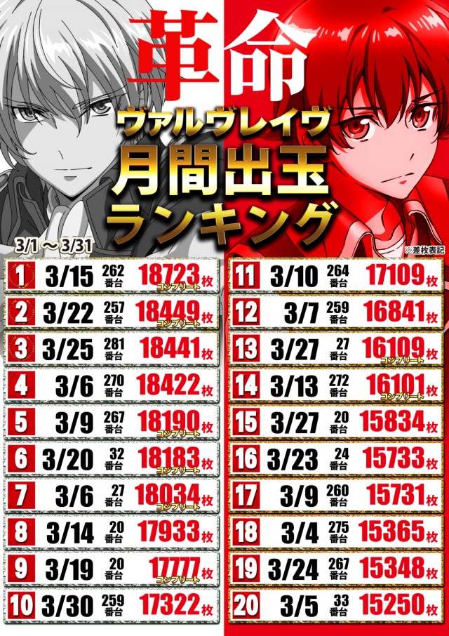 1位 4月25日(土) 2位 4月24日(金) 3位 4月23日(木)